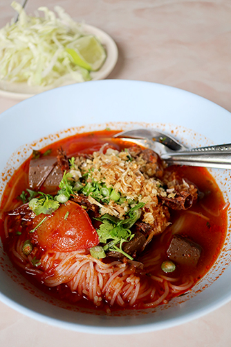 トマトベースのスープに素麺や豚肉が入っていて、ニウの花を入れるのが特徴だ。