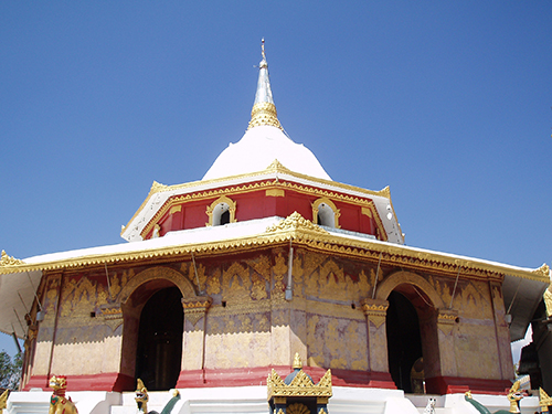 「30分ぐらい。あのお寺だよ」と彼が指差したずっとずっと先に白い仏塔が見える。