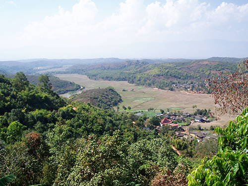 道は赤土のオフロード。時々、山岳民族の村は出てくるけど、道ですれ違う車やバイクは皆無。バイクが故障したらどうなる? と思いつつ、あまりの広大な景色にみとれて楽しいドライブだ。